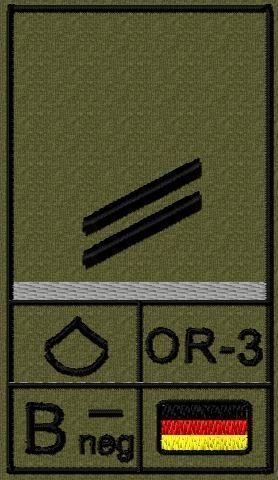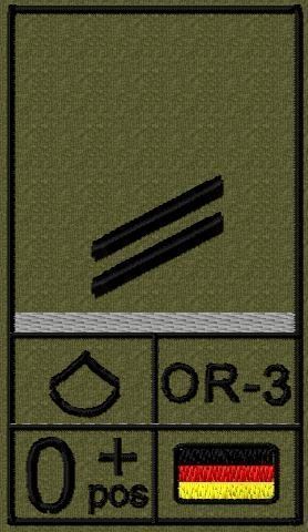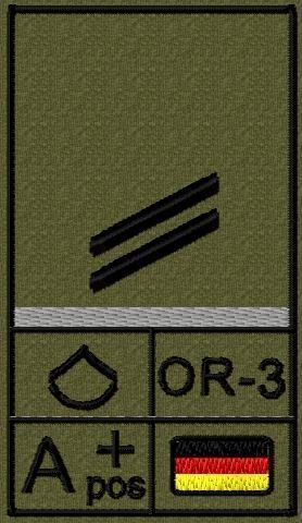Bundeswehr Rangabzeichen Klett, Graue Litze, Blutgruppe, Obergefreiter