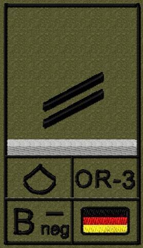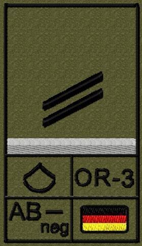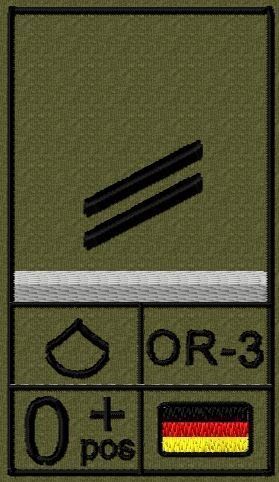 Bundeswehr Rangabzeichen Klett, Graue Litze, Blutgruppe, Obergefreiter OA