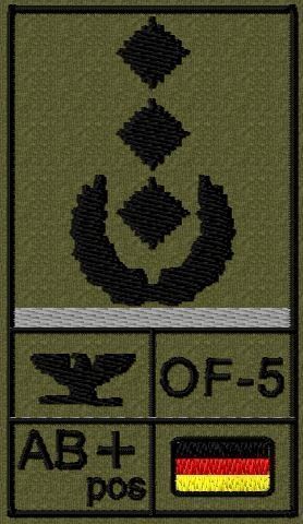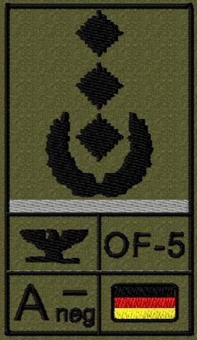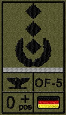 Bundeswehr Rangabzeichen Klett, Graue Litze, Blutgruppe, Oberst