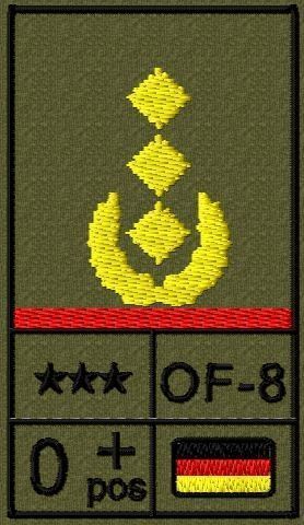 Bundeswehr Rangabzeichen Klett, Hochrote Litze, Blutgruppe, Generalleutnant