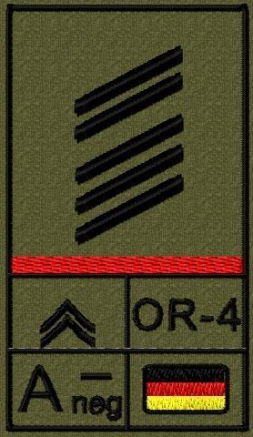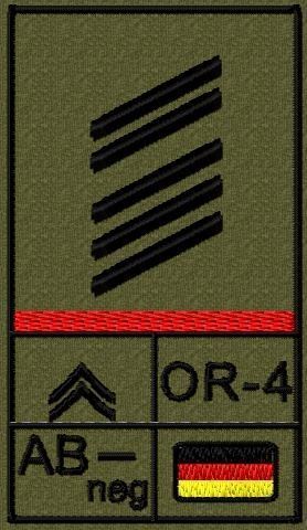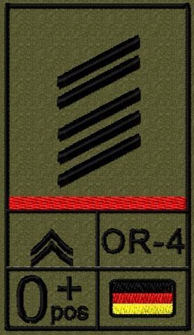 Bundeswehr Rangabzeichen Klett, Hochrote Litze, Blutgruppe, Oberstabsgefreiter