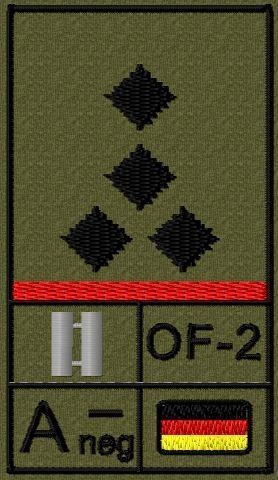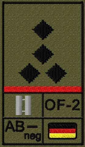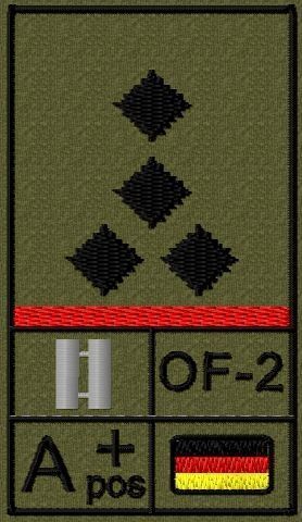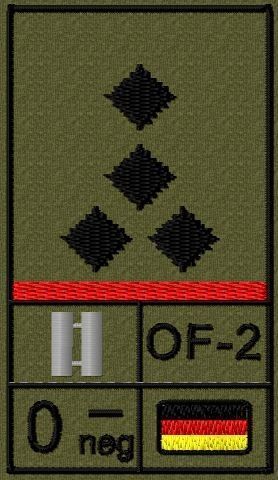 Bundeswehr Rangabzeichen Klett, Hochrote Litze, Blutgruppe, Stabshauptmann