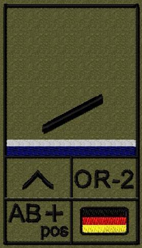 Bundeswehr Rangabzeichen Klett mit Dunkelblauer Litze, Blutgruppe, Gefreiter OA