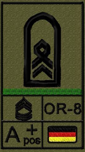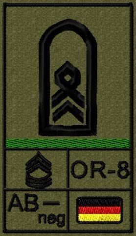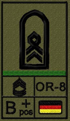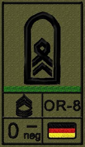 Bundeswehr Rangabzeichen Klett mit Grüner Litze, Blutgruppe, Stabsfeldwebel