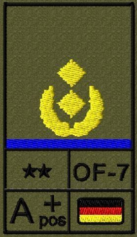 Bundeswehr Rangabzeichen Klett, Mittelblaue Litze, Blutgruppe, Generalmajor