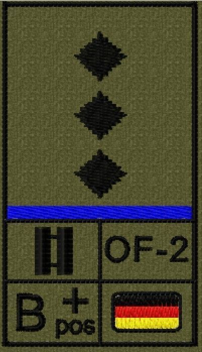 Bundeswehr Rangabzeichen Klett, Mittelblaue Litze, Blutgruppe, Hauptmann