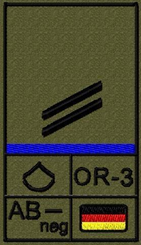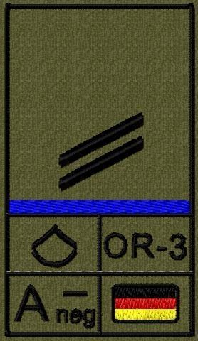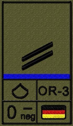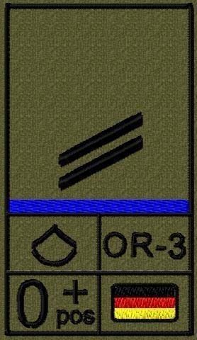 Bundeswehr Rangabzeichen Klett, Mittelblaue Litze, Blutgruppe, Obergefreiter