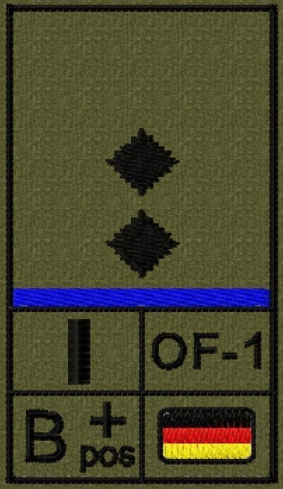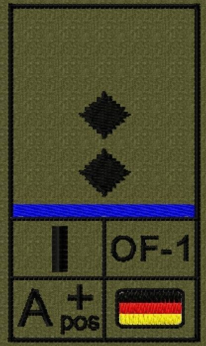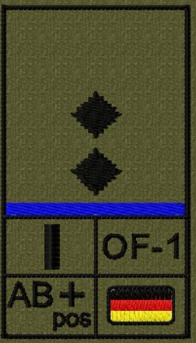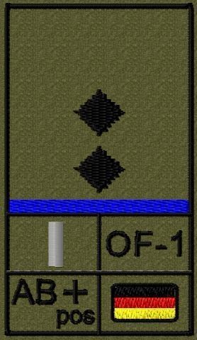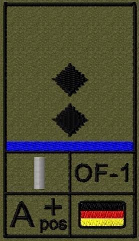 Bundeswehr Rangabzeichen Klett, Mittelblaue Litze, Blutgruppe, Oberleutnant