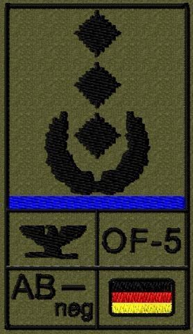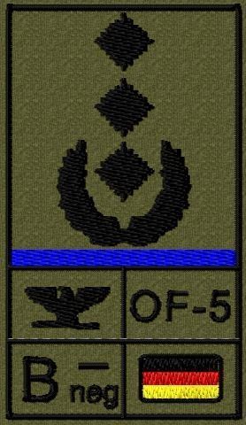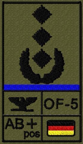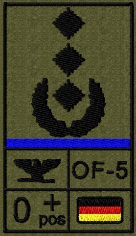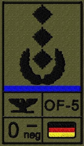 Bundeswehr Rangabzeichen Klett, Mittelblaue Litze, Blutgruppe, Oberst