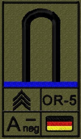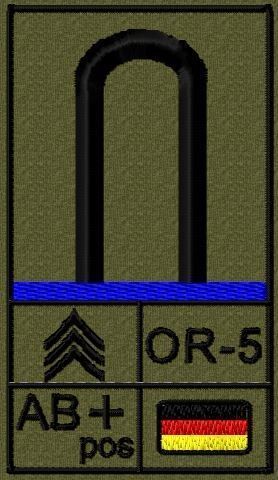 Bundeswehr Rangabzeichen Klett, Mittelblaue Litze, Blutgruppe, Unteroffizier