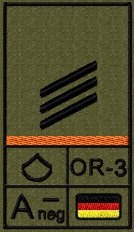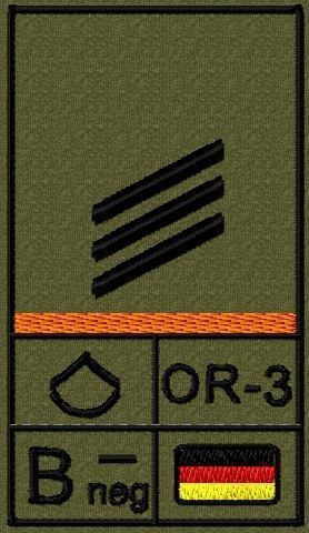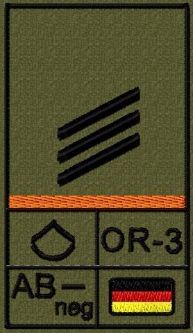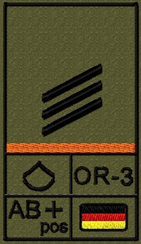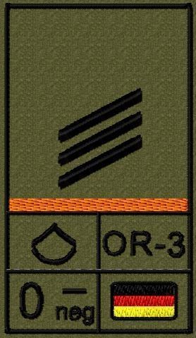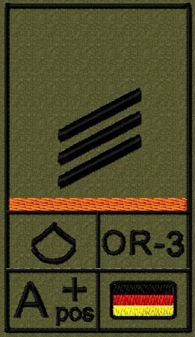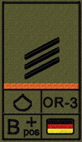 Bundeswehr Rangabzeichen Klett, Orange Litze, Blutgruppe, Hauptgefreiter