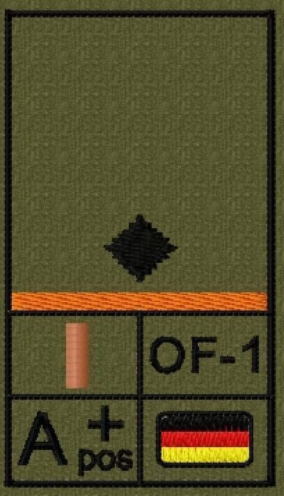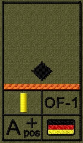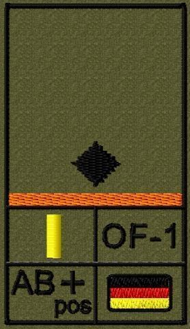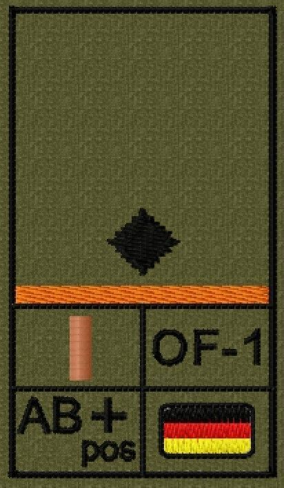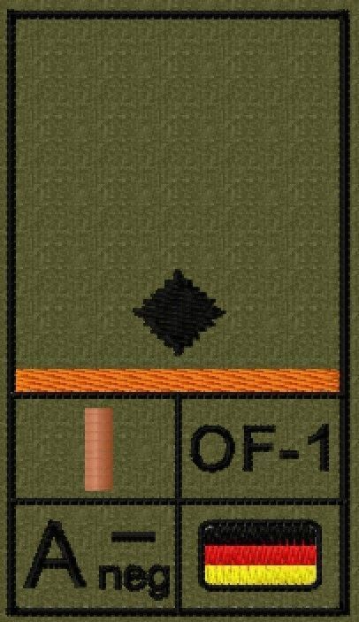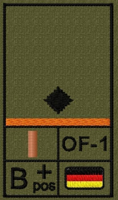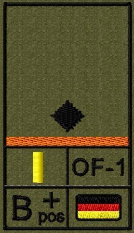 Bundeswehr Rangabzeichen Klett, Orange Litze, Blutgruppe, Leutnant