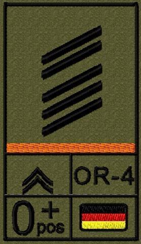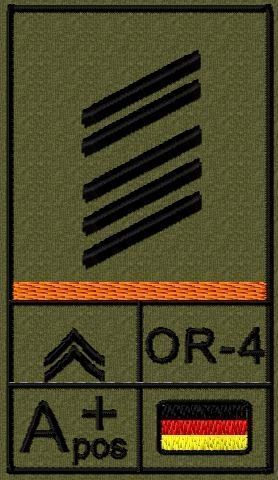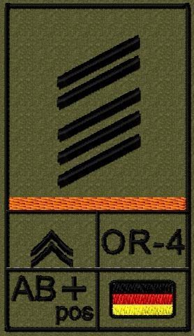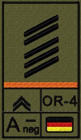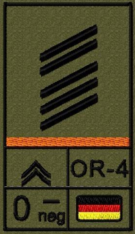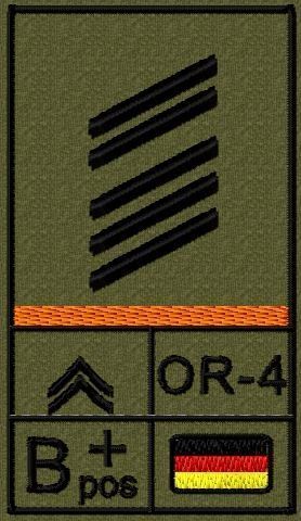 Bundeswehr Rangabzeichen Klett, Orange Litze, Blutgruppe, Oberstabsgefreiter