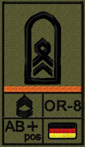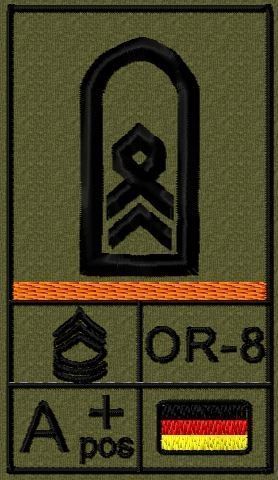 Bundeswehr Rangabzeichen Klett, Orange Litze, Blutgruppe, Stabsfeldwebel