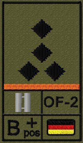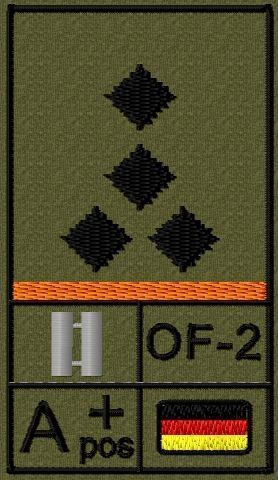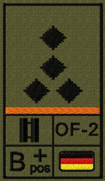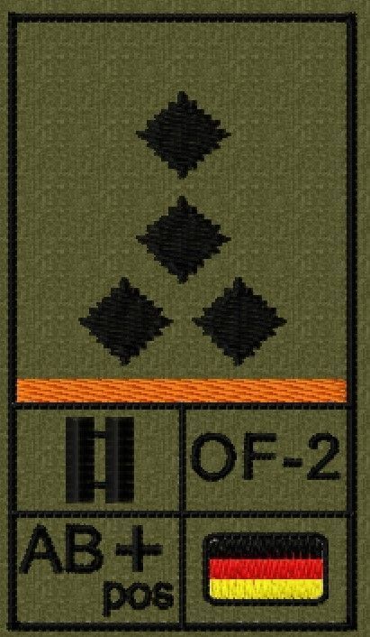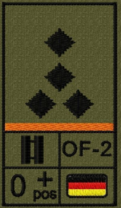 Bundeswehr Rangabzeichen Klett, Orange Litze, Blutgruppe, Stabshauptmann