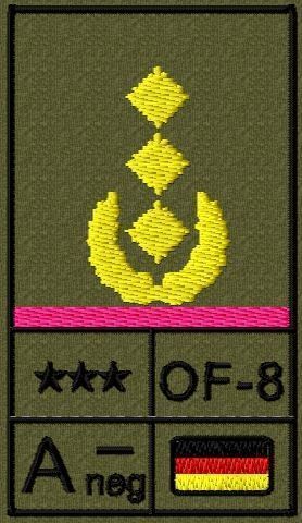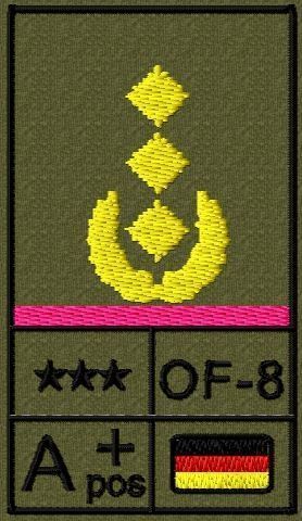 Bundeswehr Rangabzeichen Klett, Rosa Litze, Blutgruppe, Generalleutnant