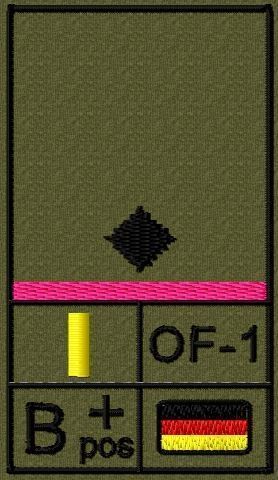 Bundeswehr Rangabzeichen Klett, Rosa Litze, Blutgruppe, Leutnant