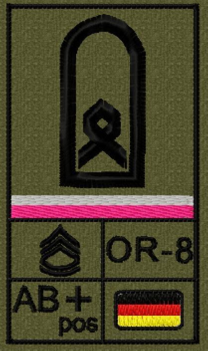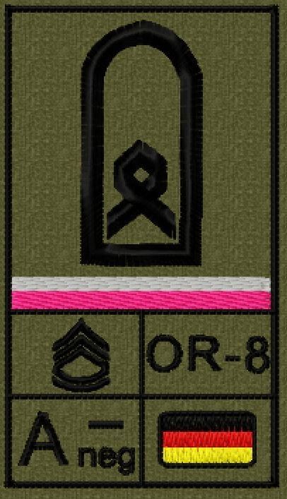 Bundeswehr Rangabzeichen Klett, Rosa Litze, Blutgruppe, Oberfähnrich