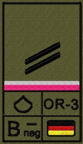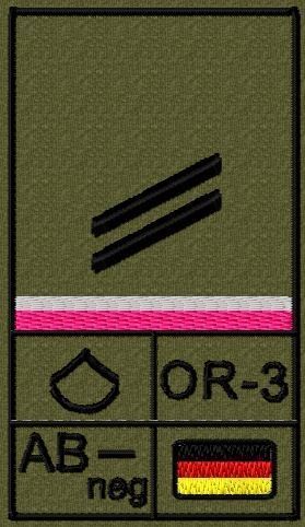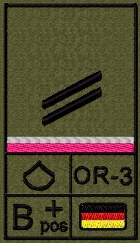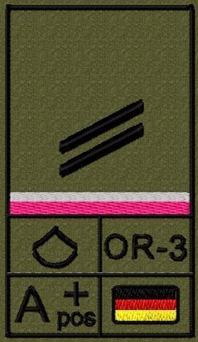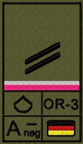 Bundeswehr Rangabzeichen Klett, Rosa Litze, Blutgruppe, Obergefreiter OA