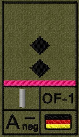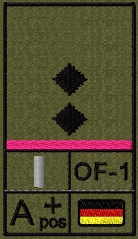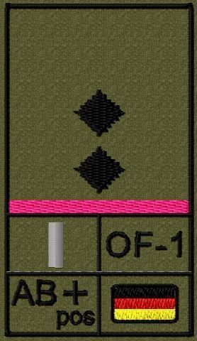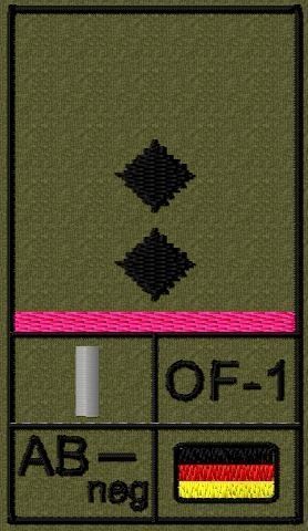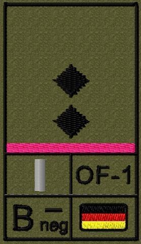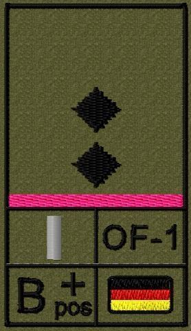 Bundeswehr Rangabzeichen Klett, Rosa Litze, Blutgruppe, Oberleutnant