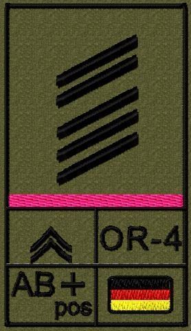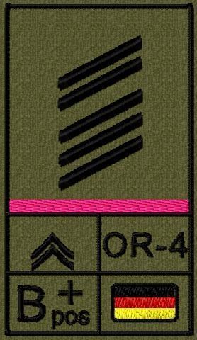 Bundeswehr Rangabzeichen Klett, Rosa Litze, Blutgruppe, Oberstabsgefreiter