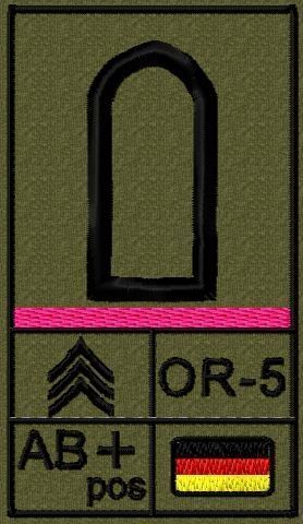 Bundeswehr Rangabzeichen Klett, Rosa Litze, Blutgruppe, Stabsunteroffizier