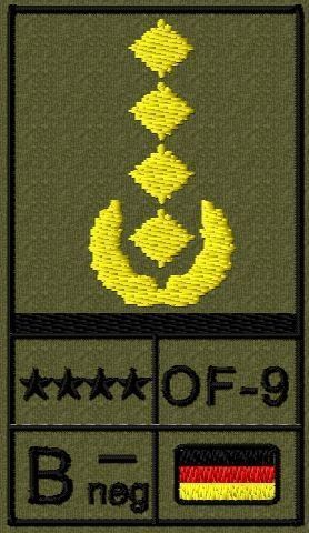 Bundeswehr Rangabzeichen Klett, Schwarze Litze, Blutgruppe, General