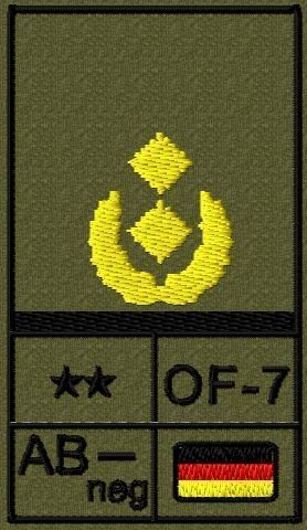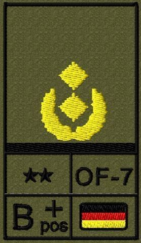 Bundeswehr Rangabzeichen Klett, Schwarze Litze, Blutgruppe, Generalmajor