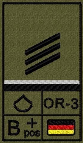 Bundeswehr Rangabzeichen Klett, Schwarze Litze, Blutgruppe, Hauptgefreiter OA