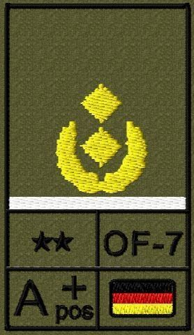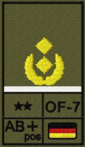 Bundeswehr Rangabzeichen Klett, Weiße Litze, Blutgruppe, Generalmajor