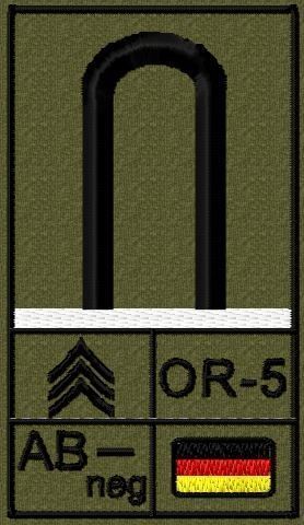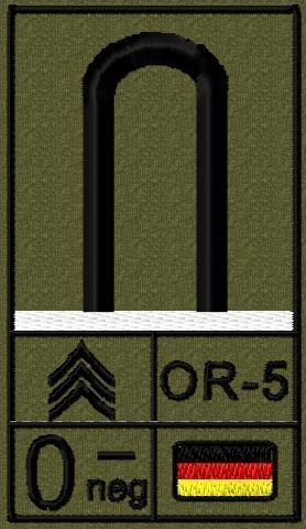 Dienstgradabzeichen auf Klett mit NATO-Rangcode, dem US Army-Dienstgrad, der Deutschlandflagge und der Blutgruppe mit Rhesusfaktor aufgestickt. Passt ideal auf das BW Unterhemd mit Klett auf der Brust oder auch auf dem Smock. Der Patch hat die Maße: B: 5,2cm x L: 9,3cm. Achtung: Bei der Auswahl der
