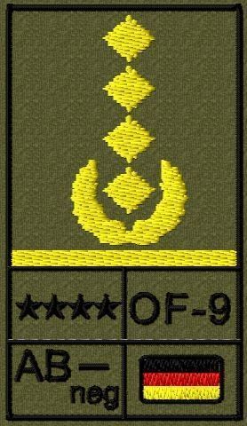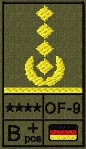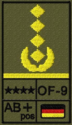 Bundeswehr Rangabzeichen Klett, Zitronengelbe Litze, Blutgruppe, General