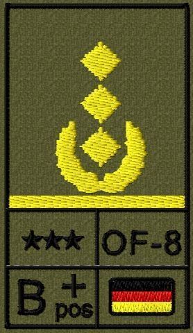 Bundeswehr Rangabzeichen Klett, Zitronengelbe Litze, Blutgruppe, Generalleutnant