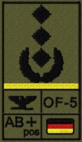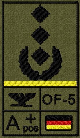 Bundeswehr Rangabzeichen Klett, Zitronengelbe Litze, Blutgruppe, Oberst