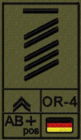 Bundeswehr Rangabzeichen m. NATO Rangcode und Blutgruppe, Heer, Oberstabsgefreiter UA