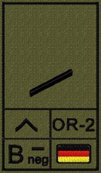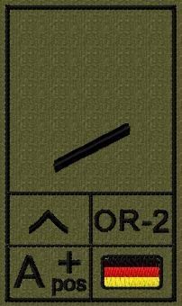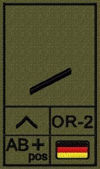 Bundeswehr Rangabzeichen mit NATO Rangcode und Blutgruppe, Heer, Gefreiter