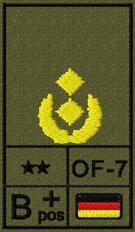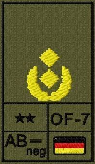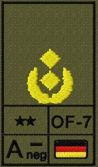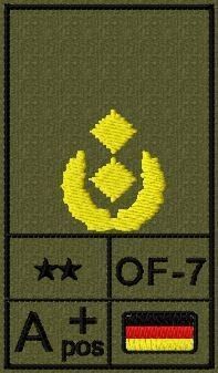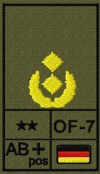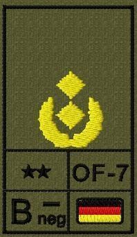 Bundeswehr Rangabzeichen mit NATO Rangcode und Blutgruppe, Heer, Generalmajor