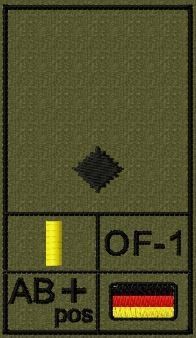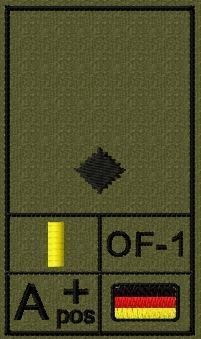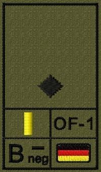 Bundeswehr Rangabzeichen mit NATO Rangcode und Blutgruppe, Heer, Leutnant
