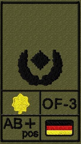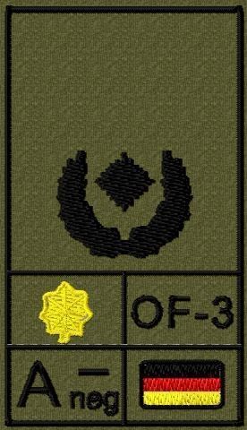 Bundeswehr Rangabzeichen mit NATO Rangcode und Blutgruppe, Heer, Major