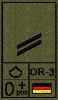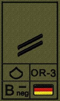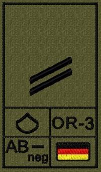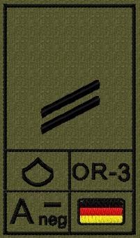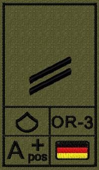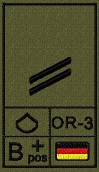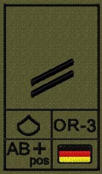 Bundeswehr Rangabzeichen mit NATO Rangcode und Blutgruppe, Heer, Obergefreiter