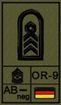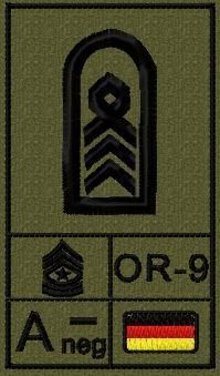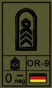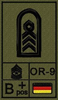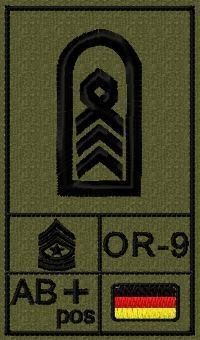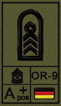 Bundeswehr Rangabzeichen mit NATO Rangcode und Blutgruppe, Heer, Oberstabsfeldwebel