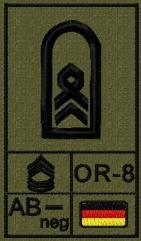 Bundeswehr Rangabzeichen mit NATO Rangcode und Blutgruppe, Heer, Stabsfeldwebel