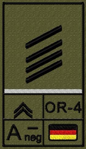 Bundeswehr Rangabzeichen mit NATO Rangcode und Blutgruppe, Heer, Stabsgefreiter OA