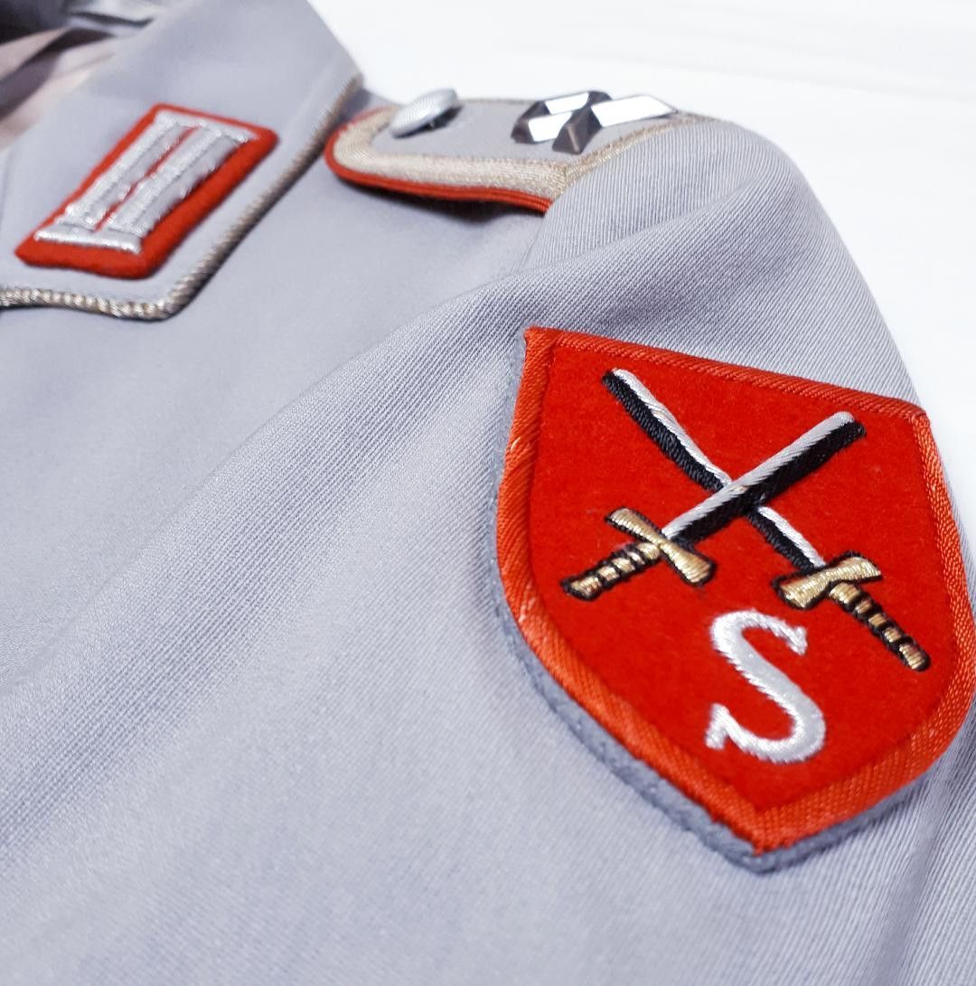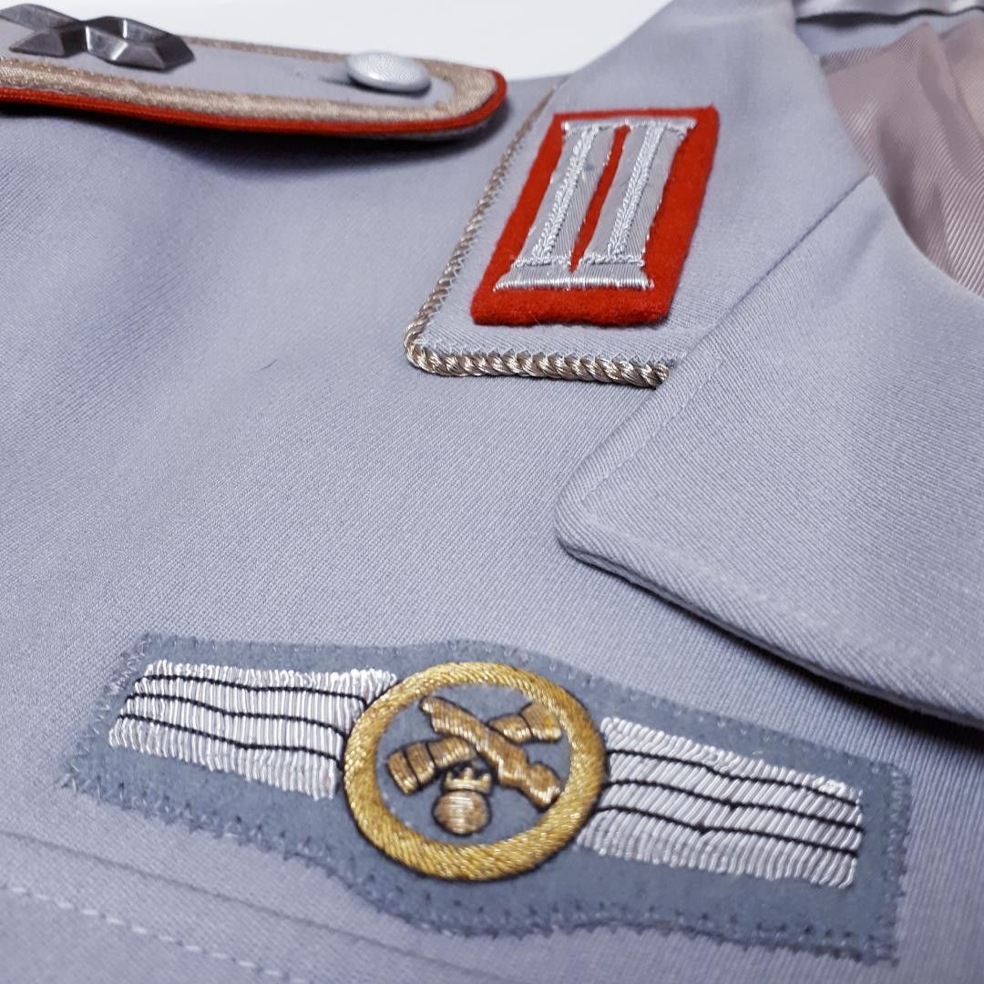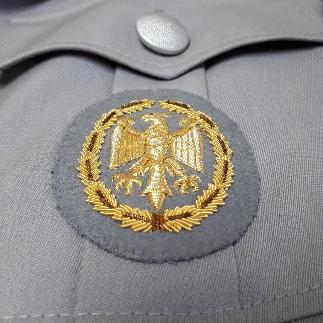 Bundeswehr Uniformjacke Hauptfeldwebel Artillerie K 24 Mit: - Tätigkeitsabzeichen Rohrwaffenpersonal, gestickt - Leistungsabzeichen in Gold, gestickt - Verbandabzeichen Artillerieschule Idar-Oberstein, gestickt * Maße: - ca. 96 cm Brustumfang - ca. 76 cm Rückenlänge - ca. 63 cm Ärmellänge Zustand: akzeptabel - gebraucht mit einigen Gebrauchsspuren, ferner ist der Kragen recht speckig