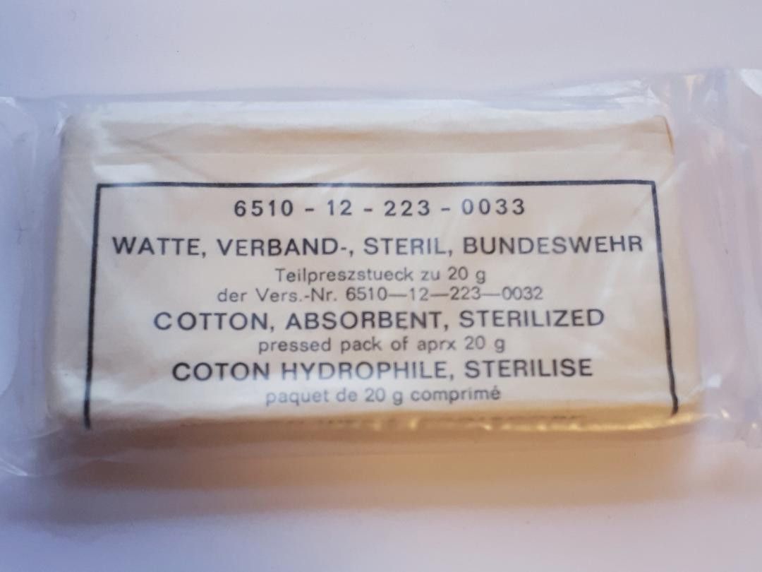 Bundeswehr Verbandwatte K 8 * Verkauf nur noch als Deko- und Sammlerartikel! Zustand: neu - unbenutzte Lagerware Abbildung ist beispielhaft, Abweichungen können vorkommen!