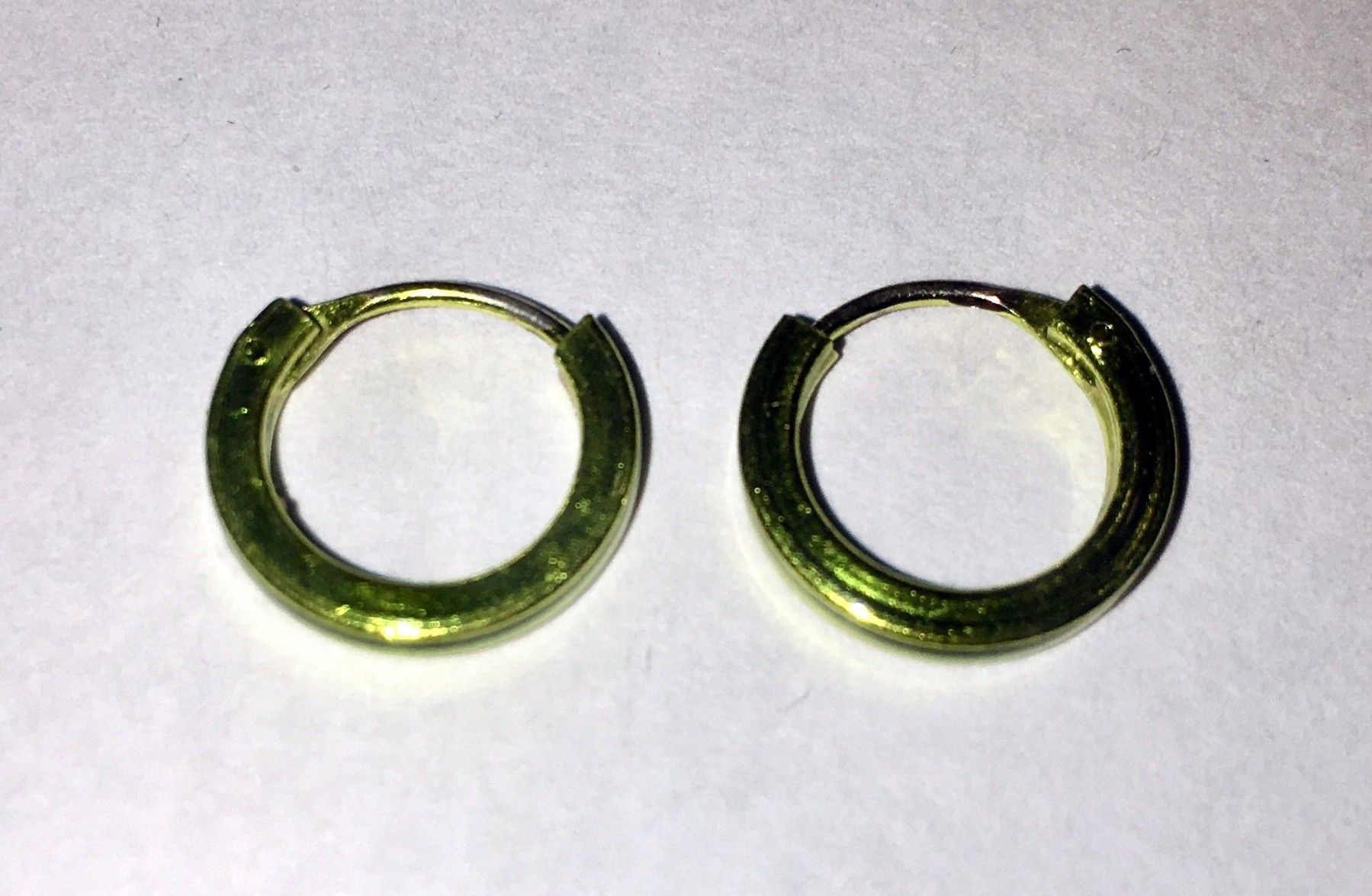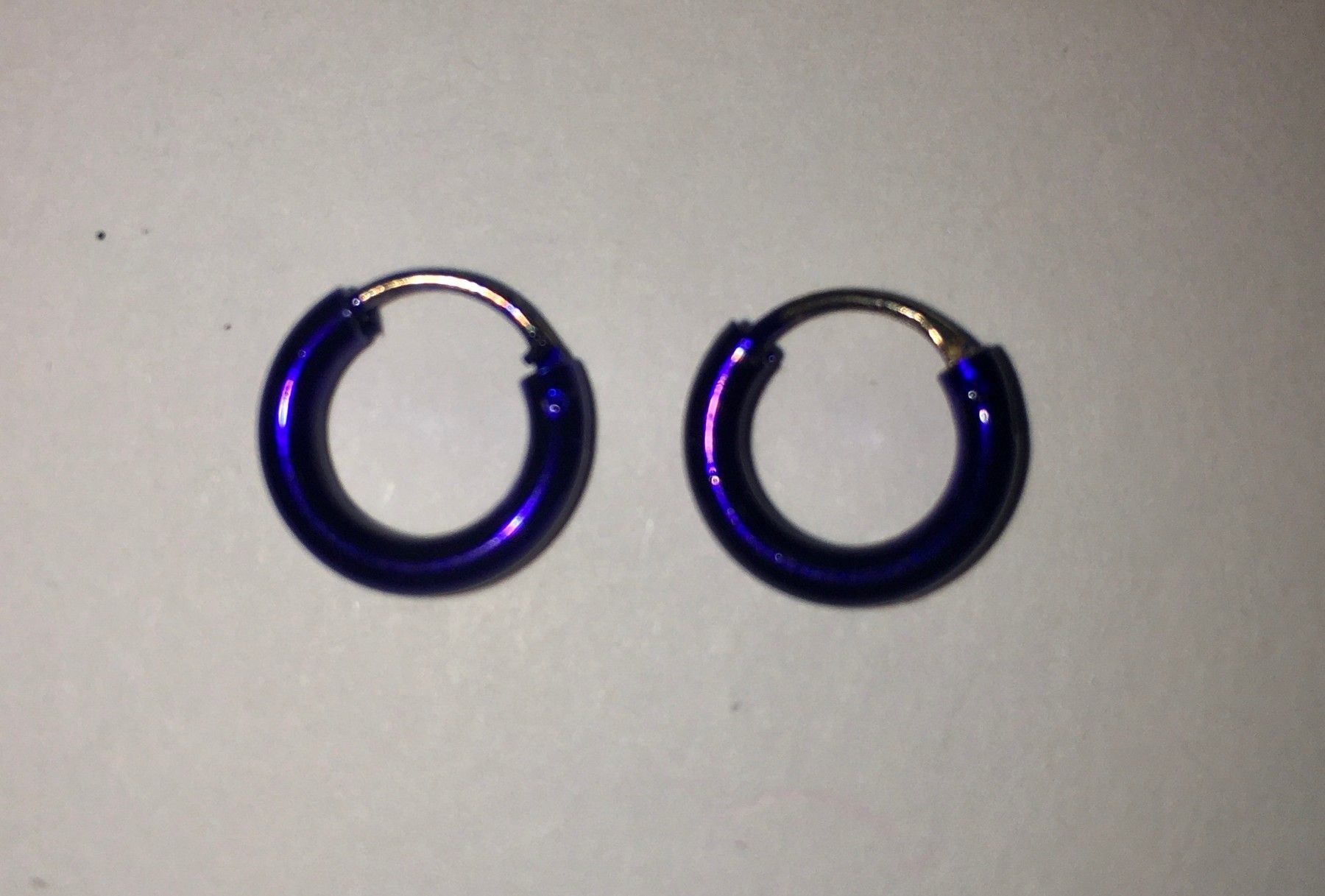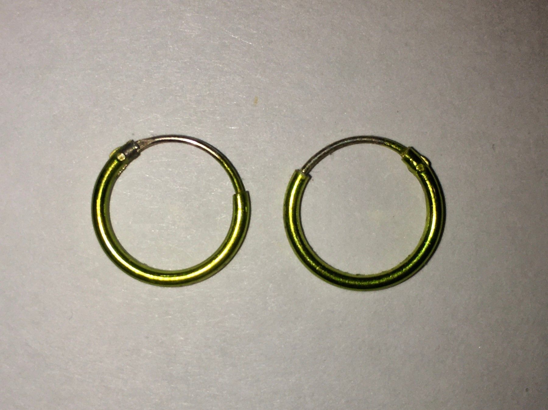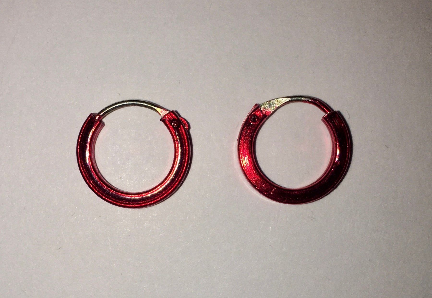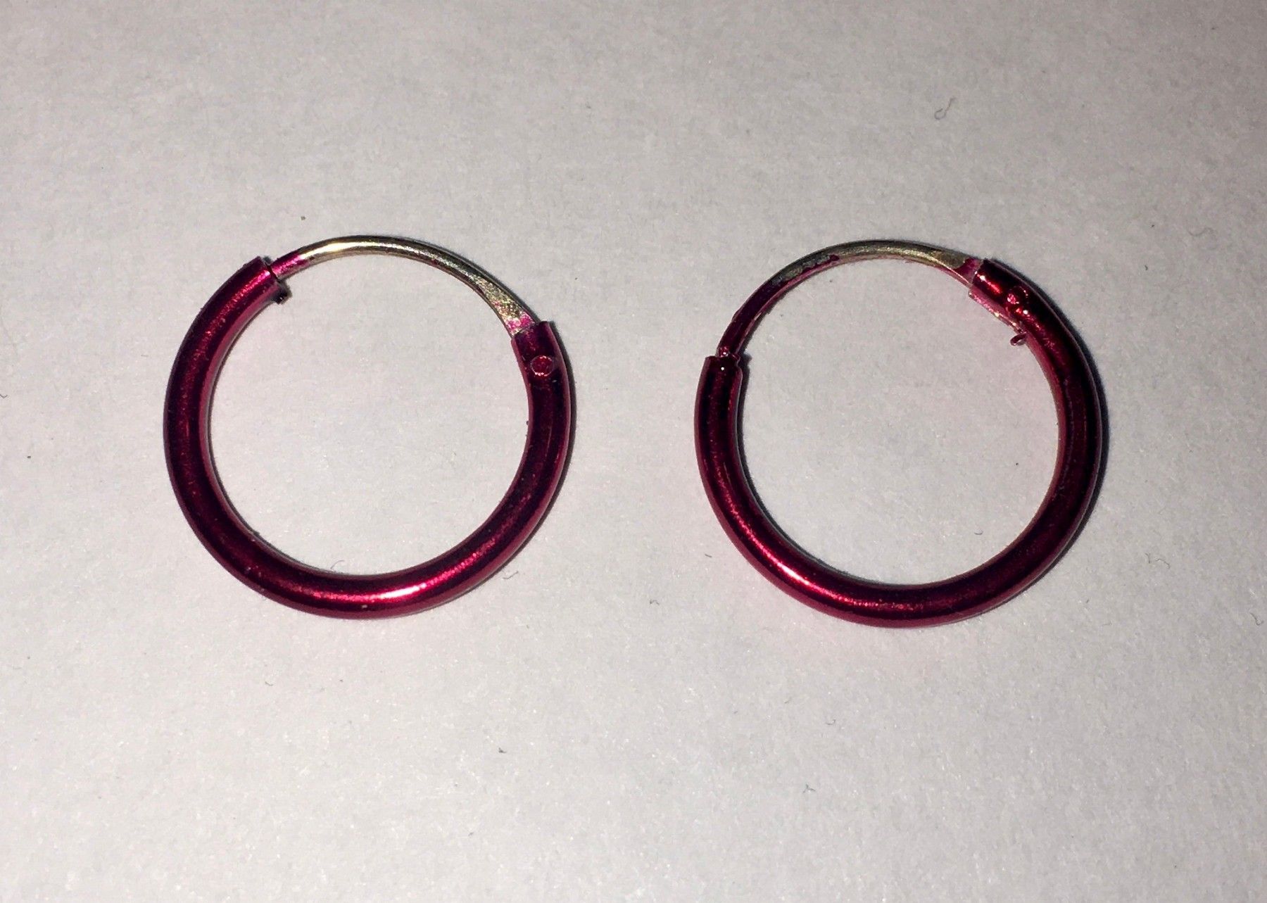 Bunt gefärbte Ohrringe aus ungestempelten 800er Silber von Götz Barner Verschiedene Durchmesser von 9 bis 16 mm Verschiedene Farben: Gold, grün, blau, rot, lila, pink,türkis und Regenbogen Handarbeit aus Hamburg St.Pauli