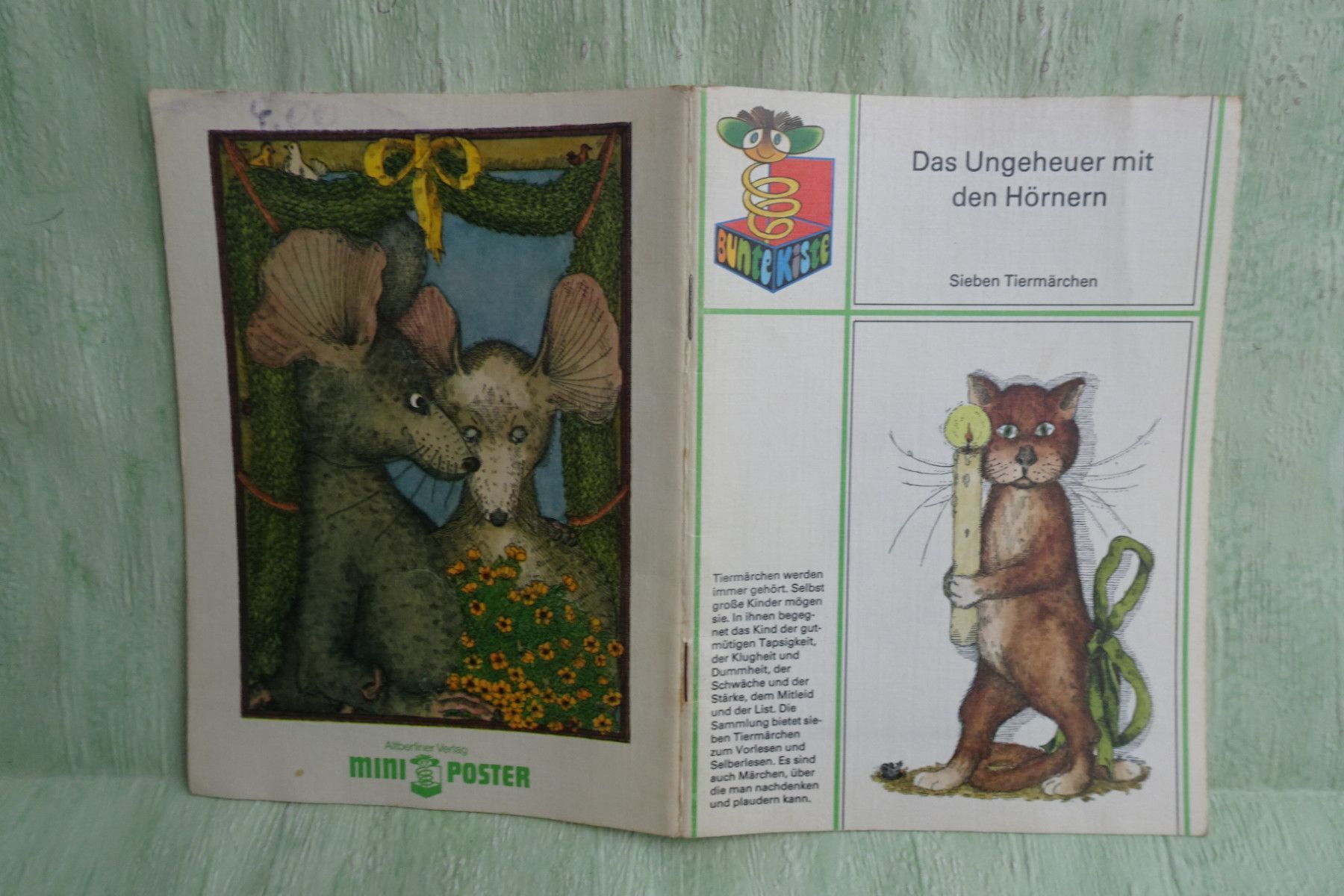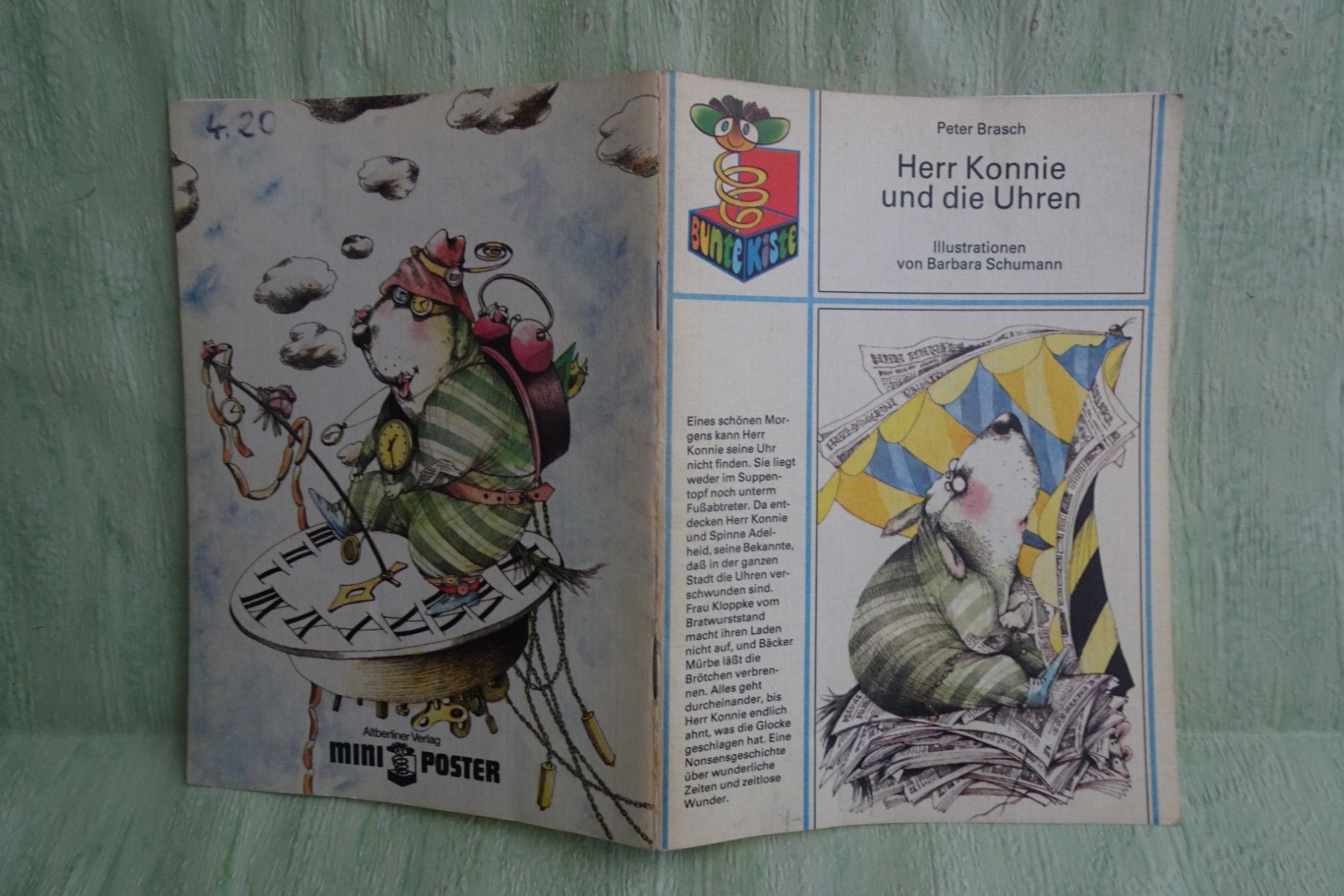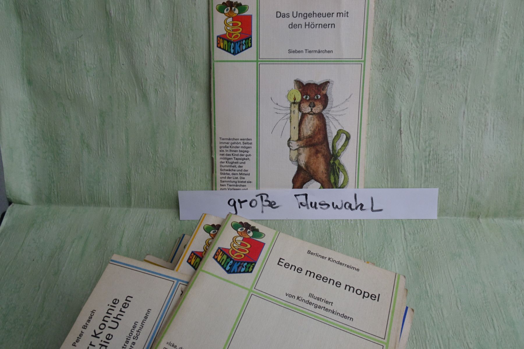 Bilderbücher - Kinderbücher ... Erinnerungen ..... Das Ungeheuer mit den Hörnern - Sieben Tiermärchen 1. Auflage 1983 Eene meene mopel - Berliner Kinderreime illustriert von Kindergartenkindern 1. Auflage 1986 Herr Konnie und die Uhren - Peter Brasch Illustrationen Barbara Schumann 2. Auflage 1989 K... Mehr