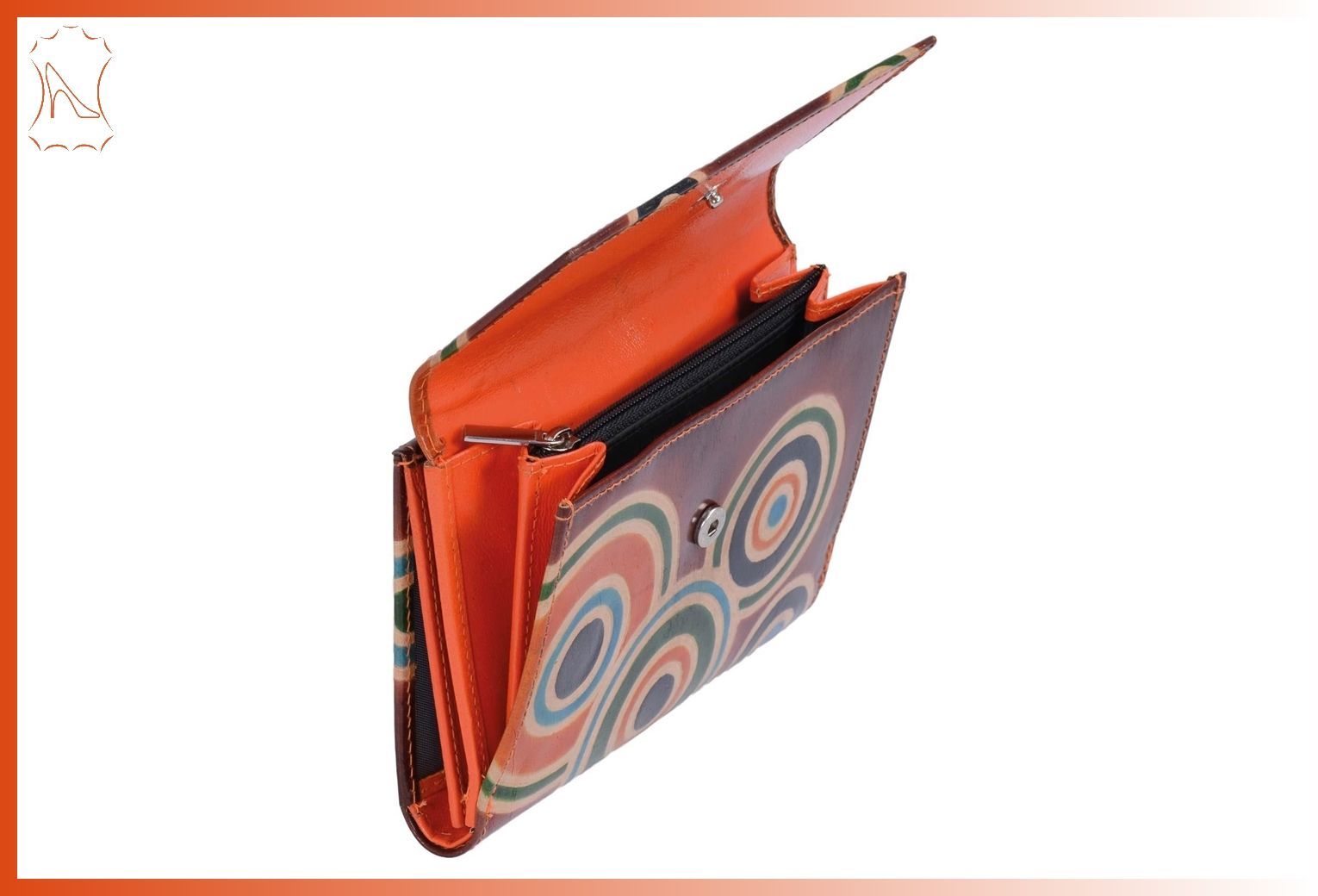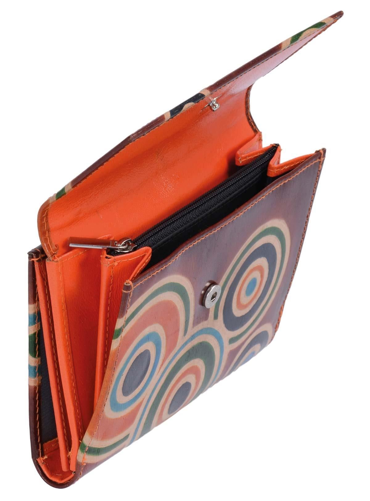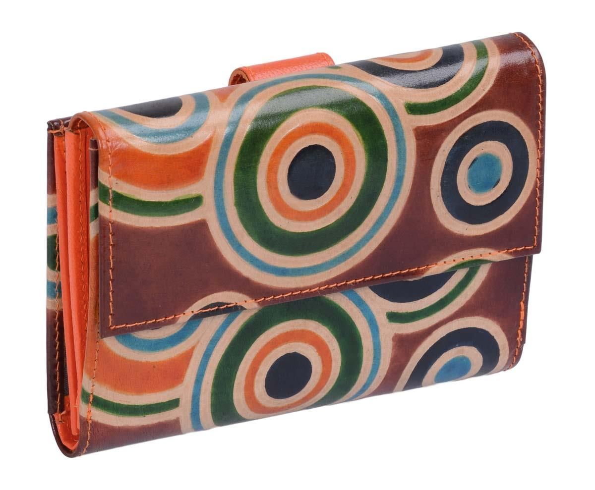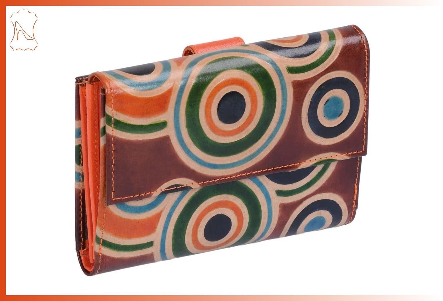bunte Leder-Damen-Börse mit Klappe, festes Leder, bunt bemalt, rot