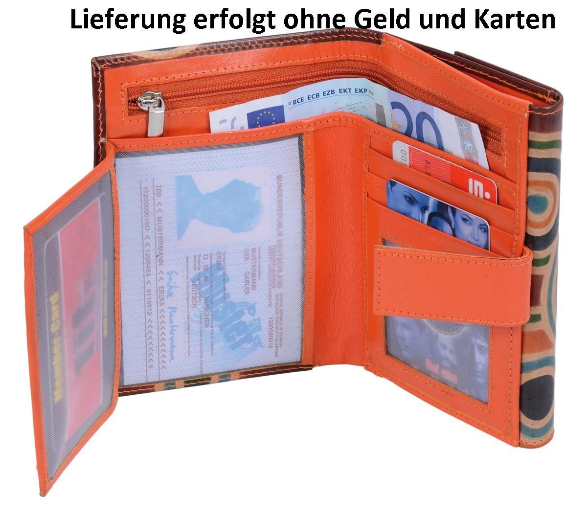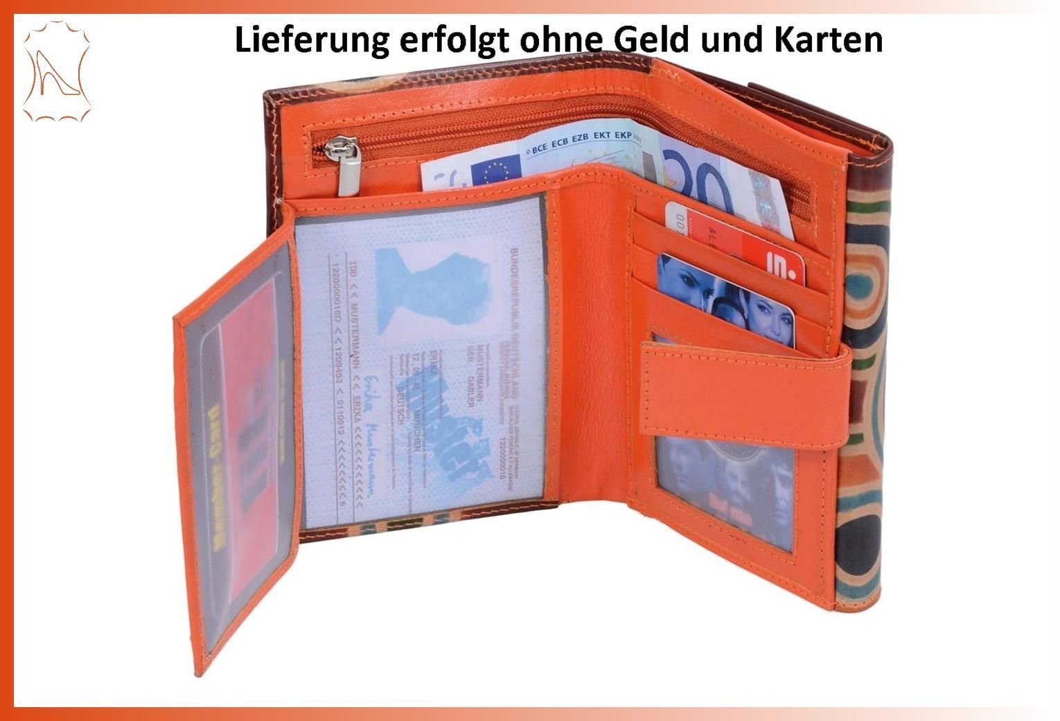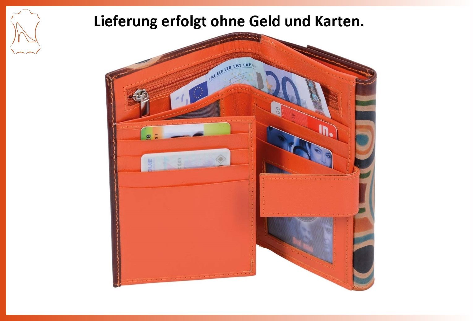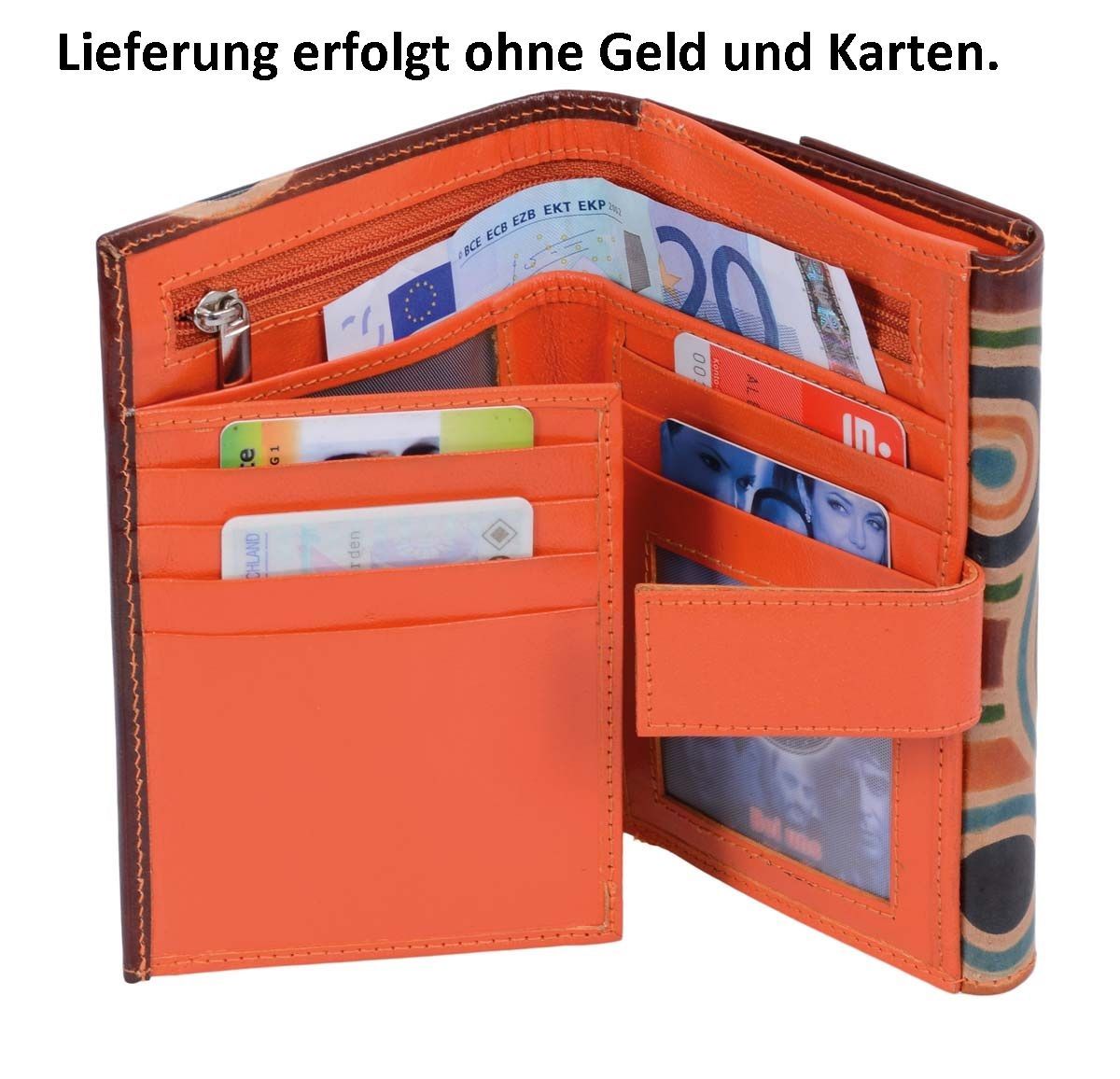 bunte Leder-Damen-Börse mit Klappe, festes Leder, bunt bemalt, rot