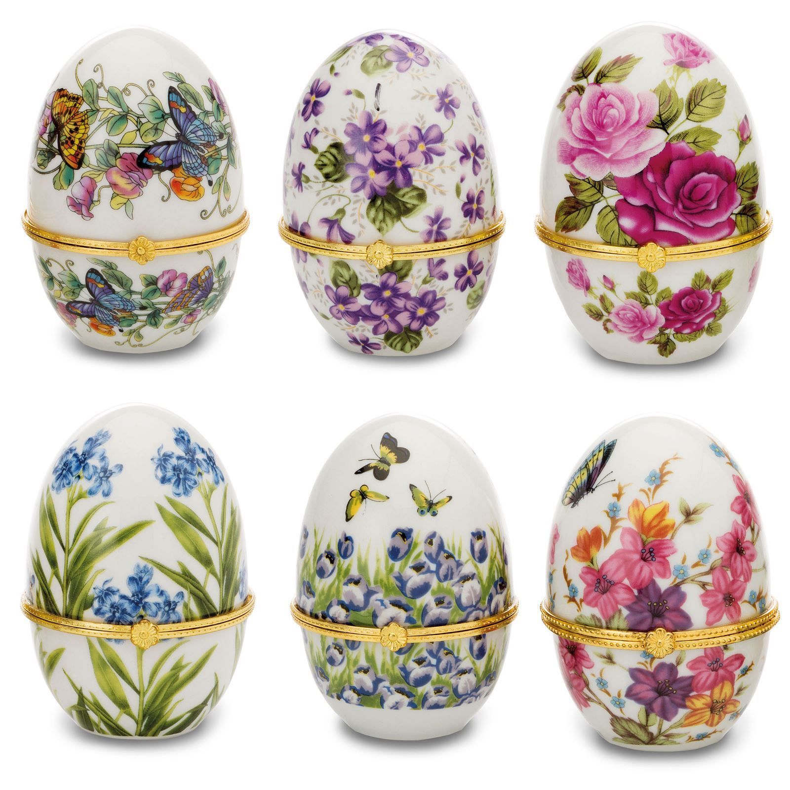 bunte vergoldete kleine Porzellan Deko Eierbecher mit Deckel im Set 6-teilig